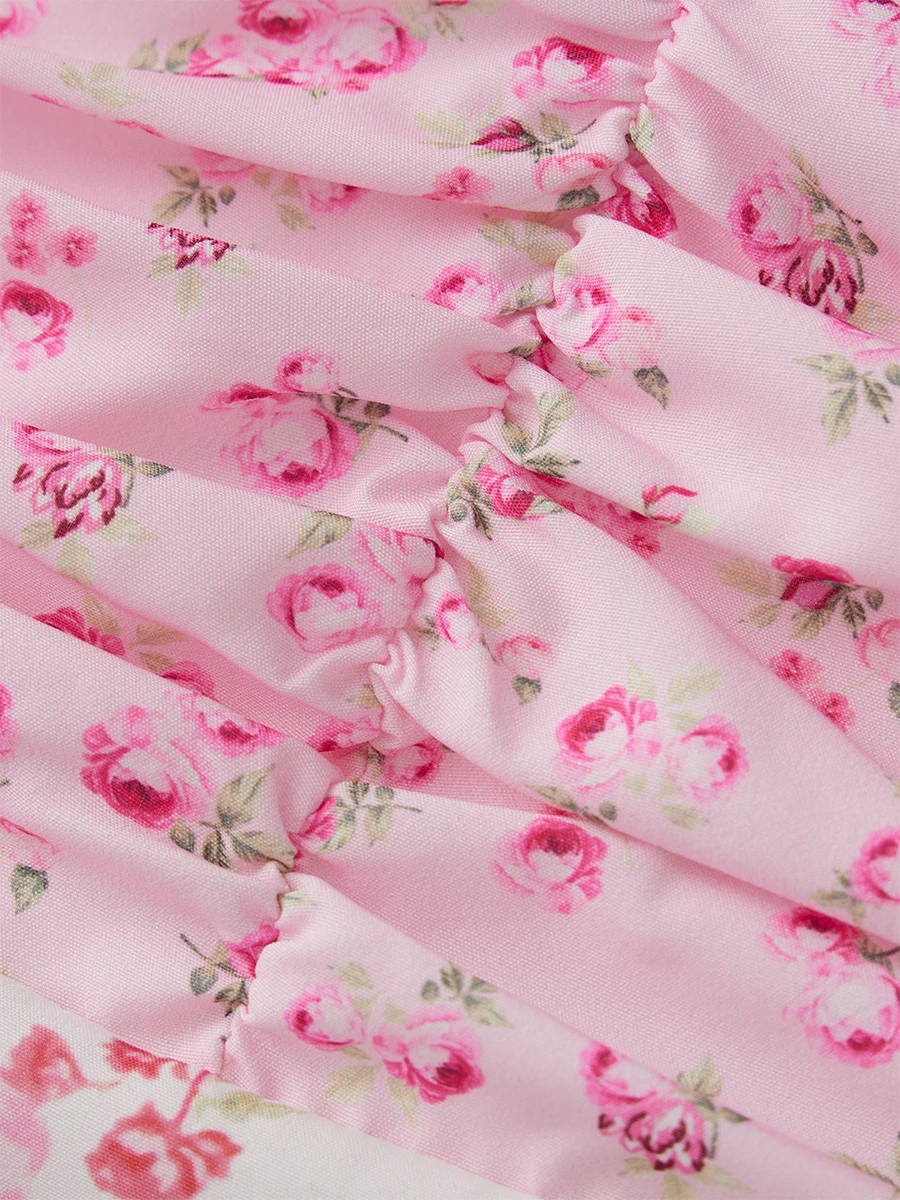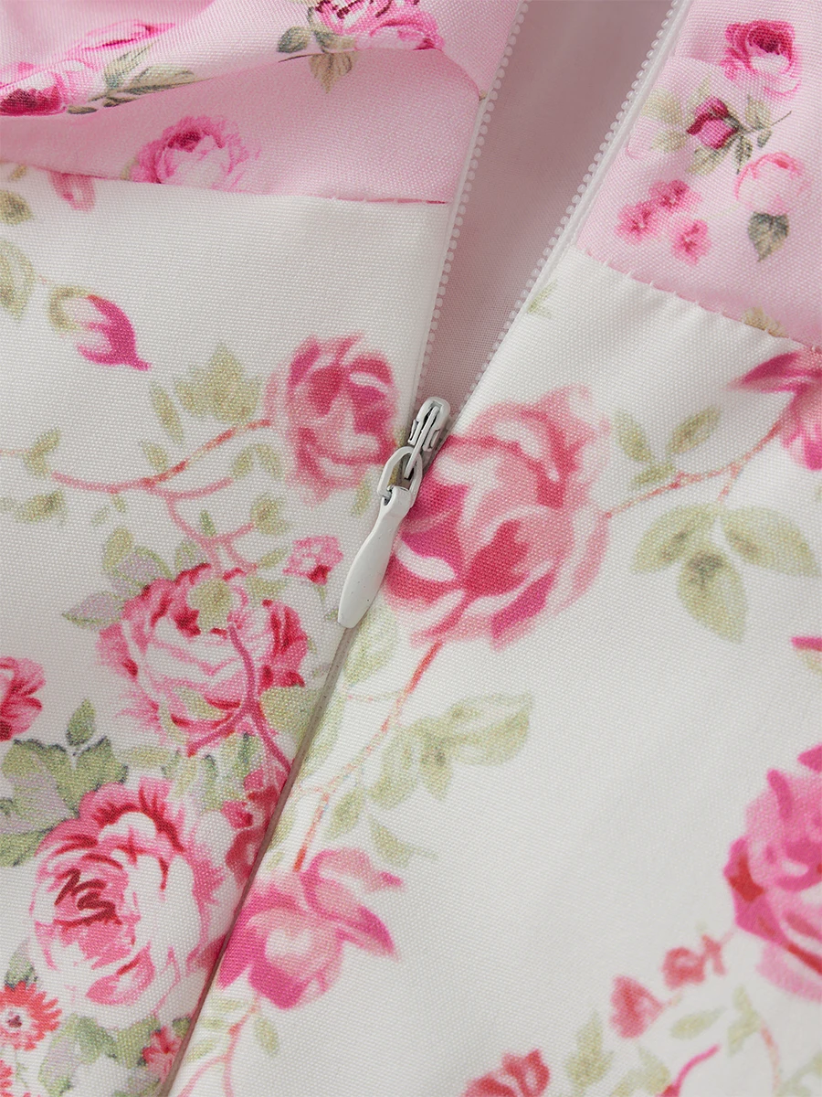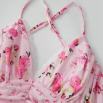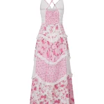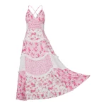 Women’s Floral Dress Stylish Lace Patchwork Ruffled Trim Sleeveless Spaghetti Strap V Neck A-Line Long Dress for Summer