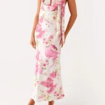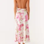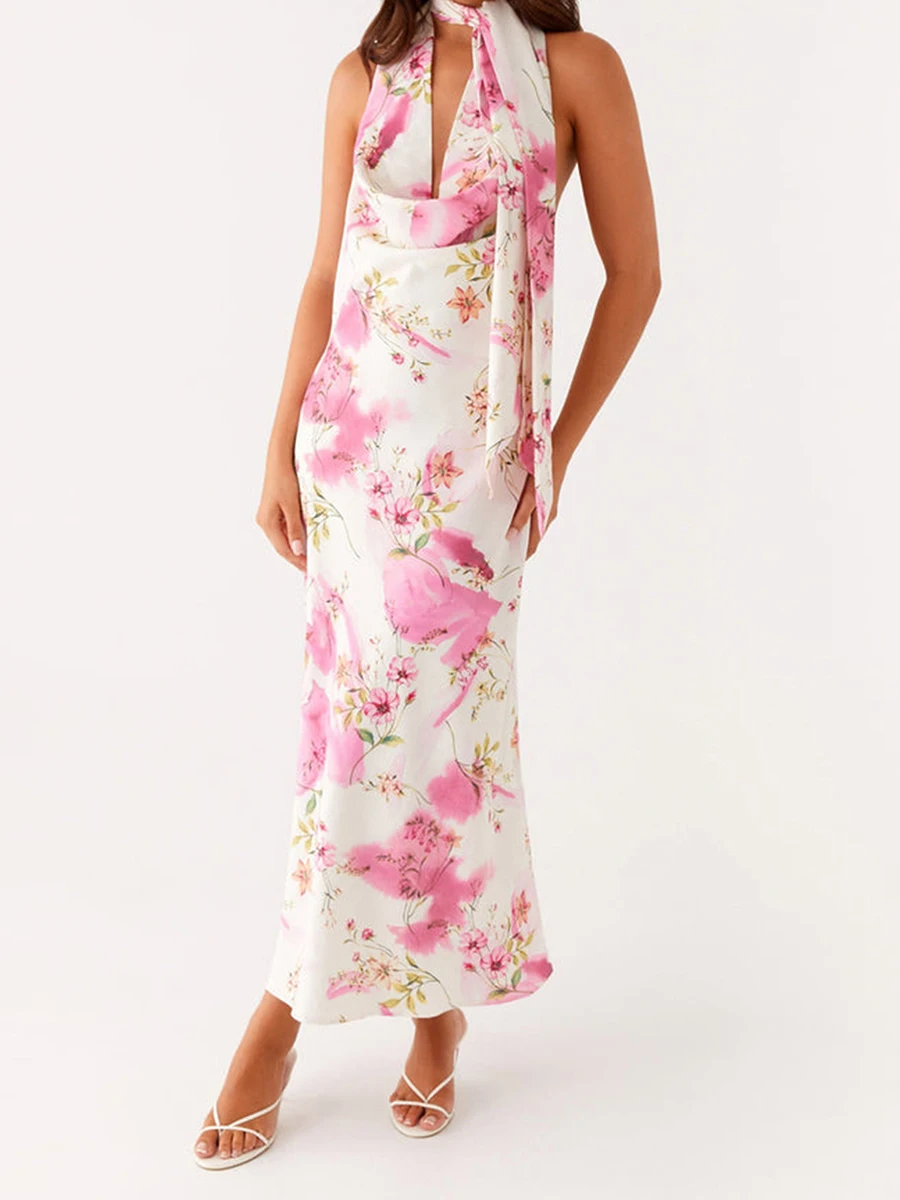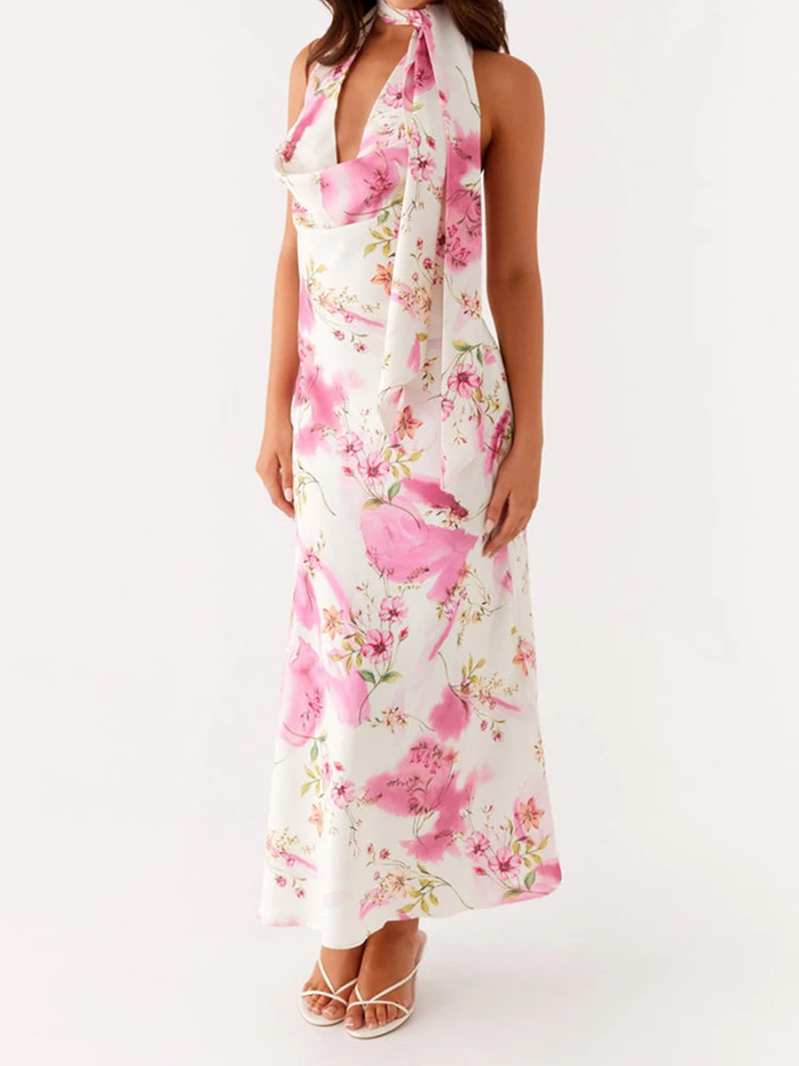 Floral print, cowl neck, halter neck and backless; Casual dresses for women; Ankle length design, and scarf set, easily show your charming curves, perfect addition to your closet