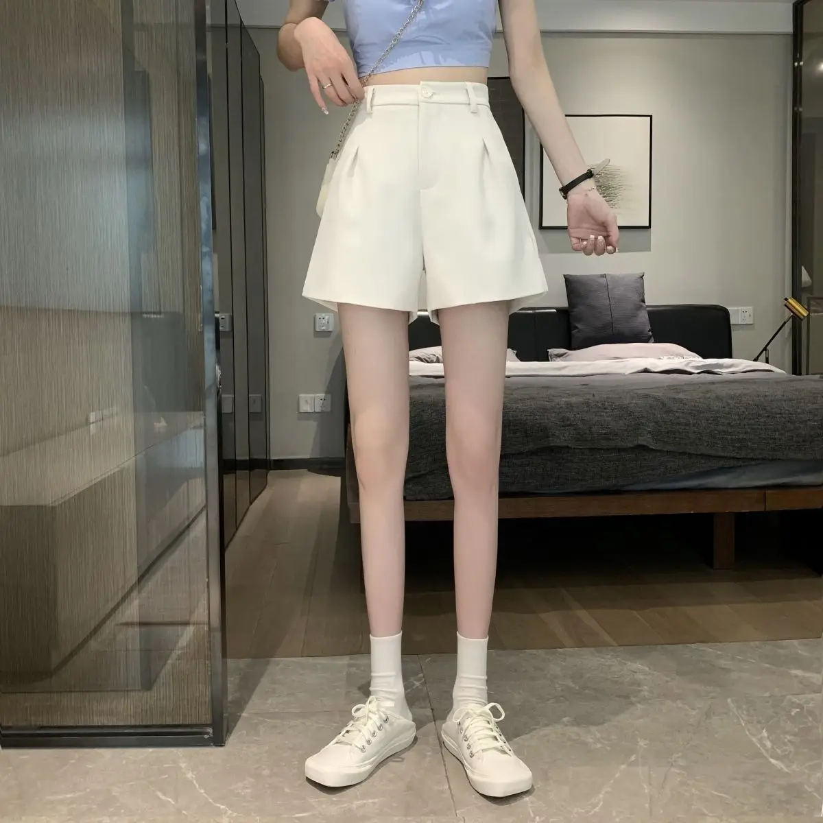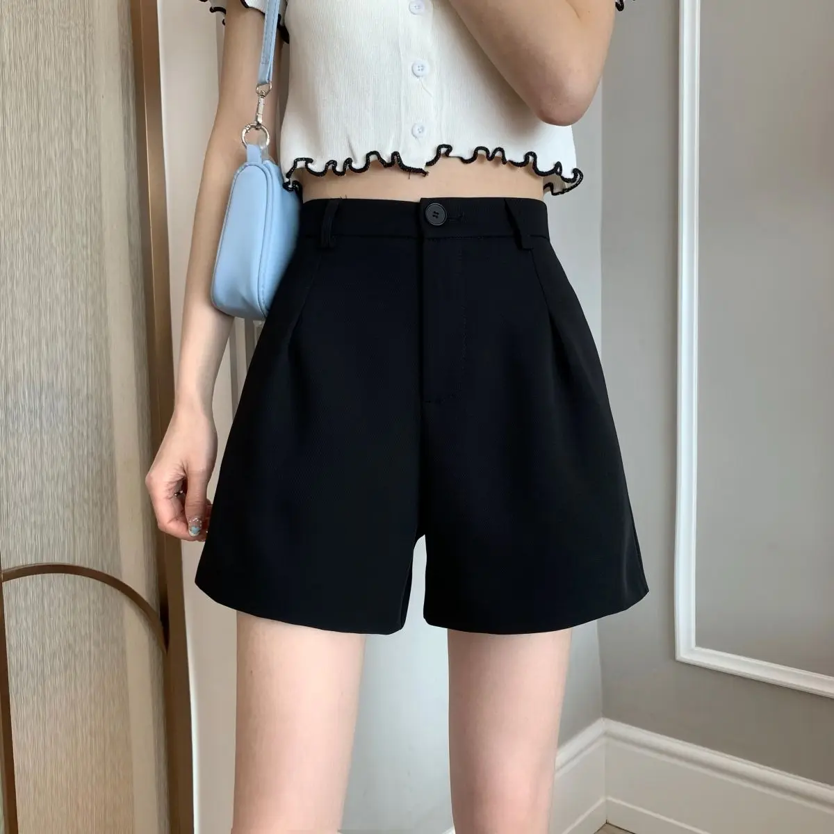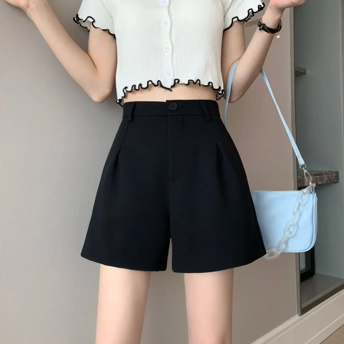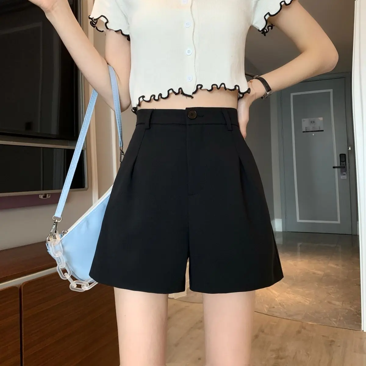Black Shorts for Women 2025 Summer New Large Size Fat Mm Wide-leg Pants High Waist Outer Wear Versatile A-line Casual Hot Pants