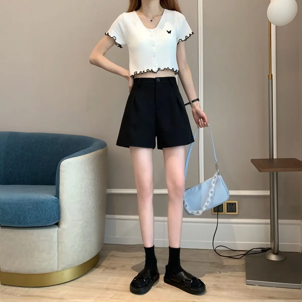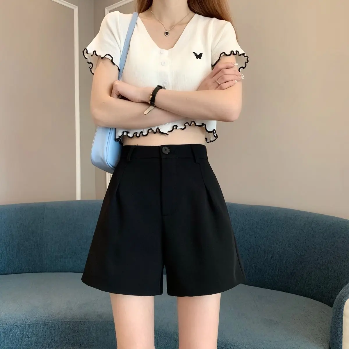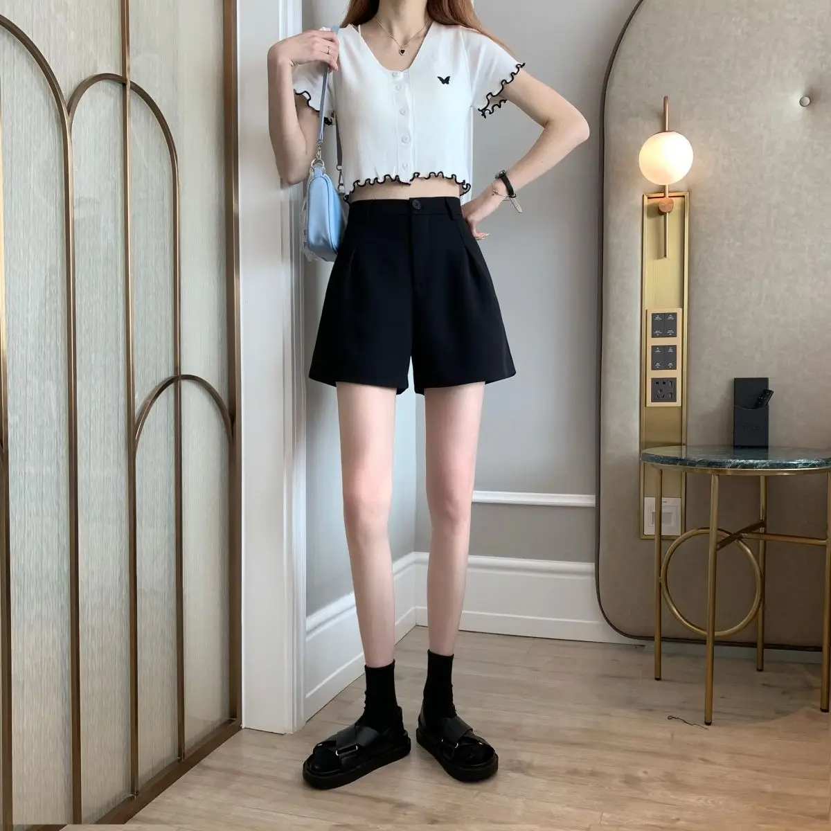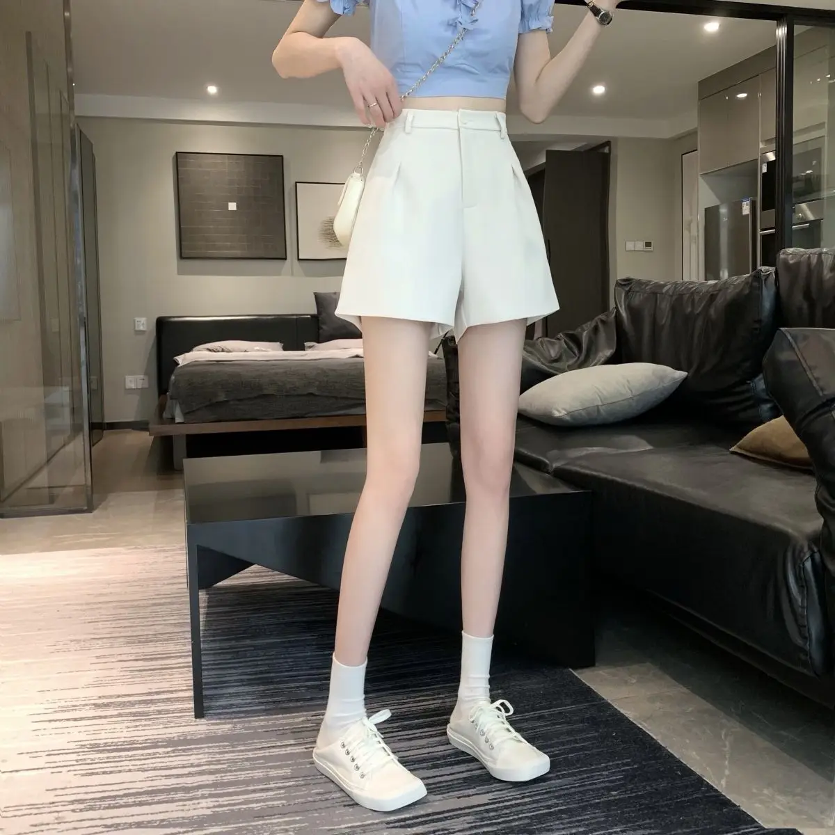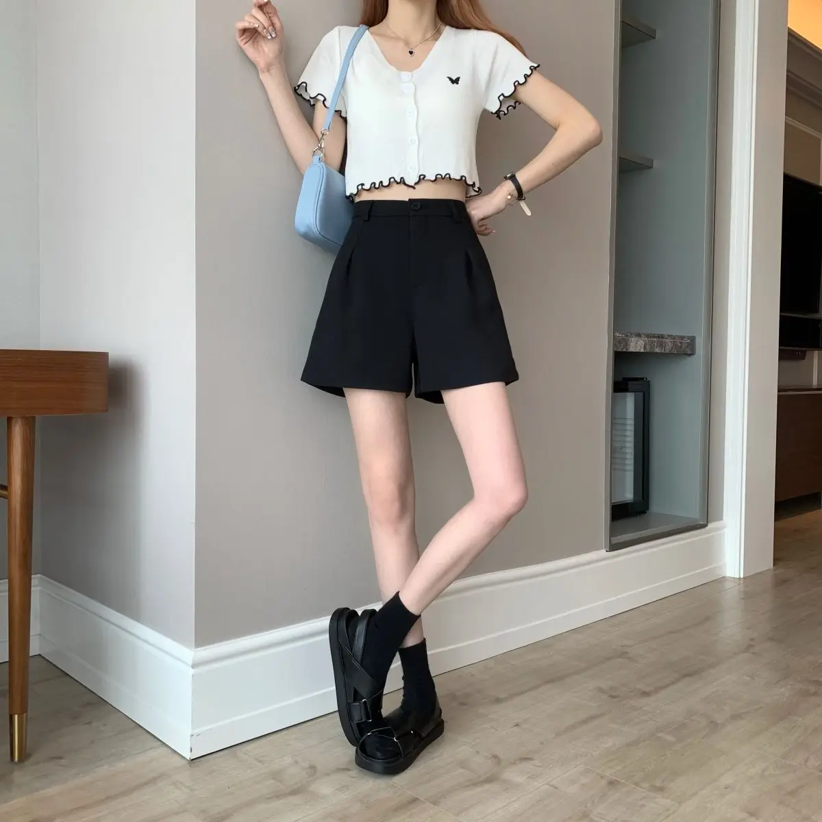 Black Shorts for Women 2025 Summer New Large Size Fat Mm Wide-leg Pants High Waist Outer Wear Versatile A-line Casual Hot Pants
