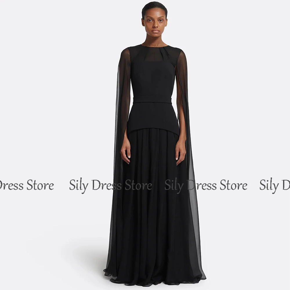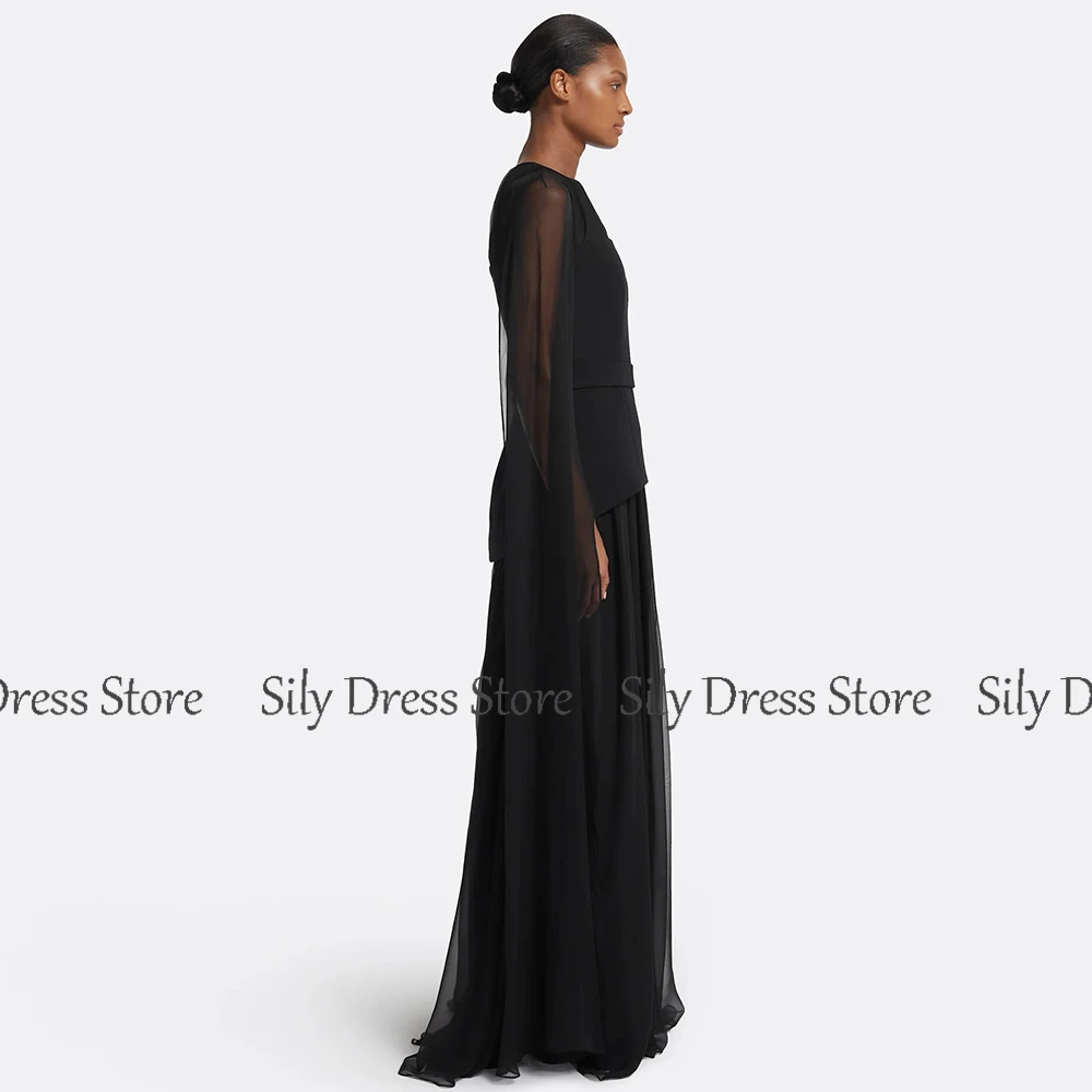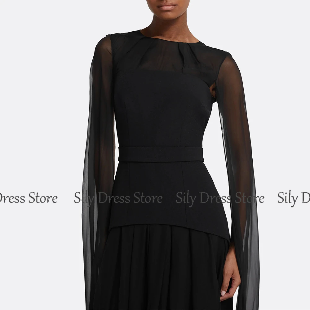 Classic Special Occasion Dresses 2025 Chiffon Sheath/Column Evening Dress Black O-Neck Ruched Button Batwing Sleeve Prom Dresses