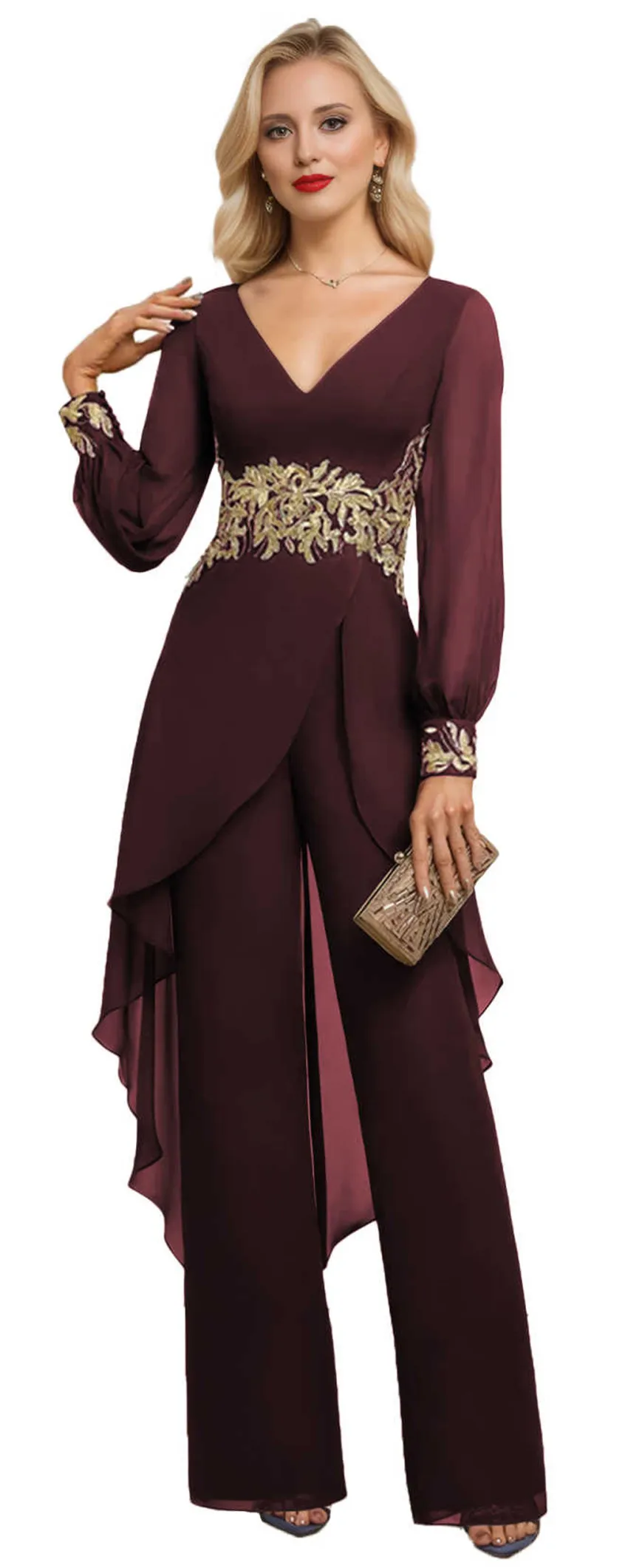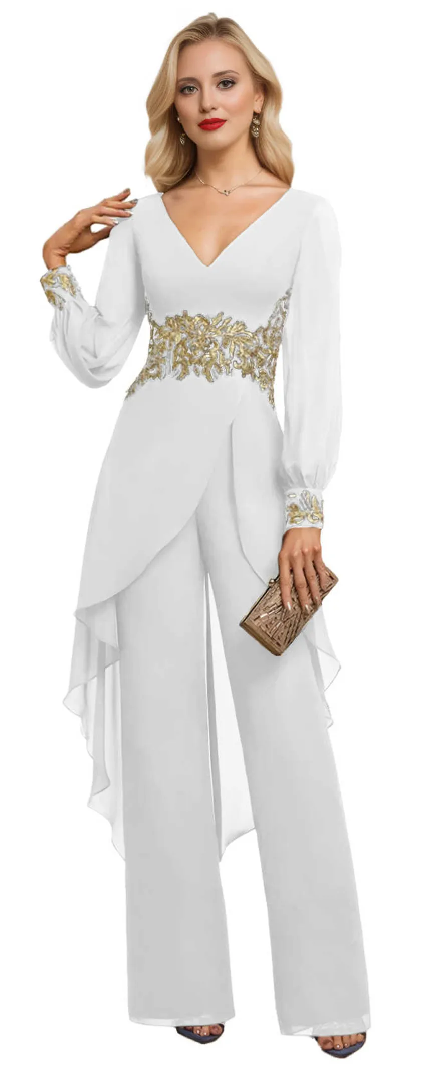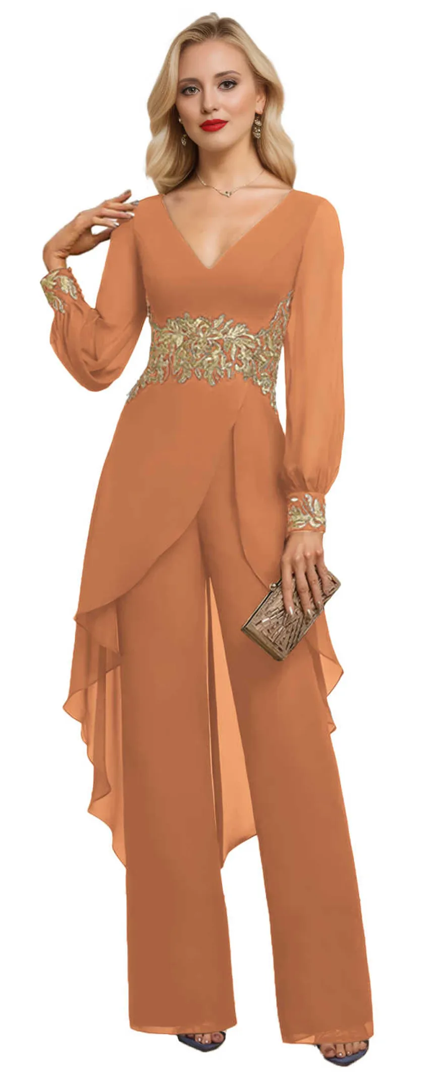 Customized Mother of the Bride Dresses Elegant Chiffon Long Sleeved Pant Suit Formal Wedding Guest Special Event Set Dresses