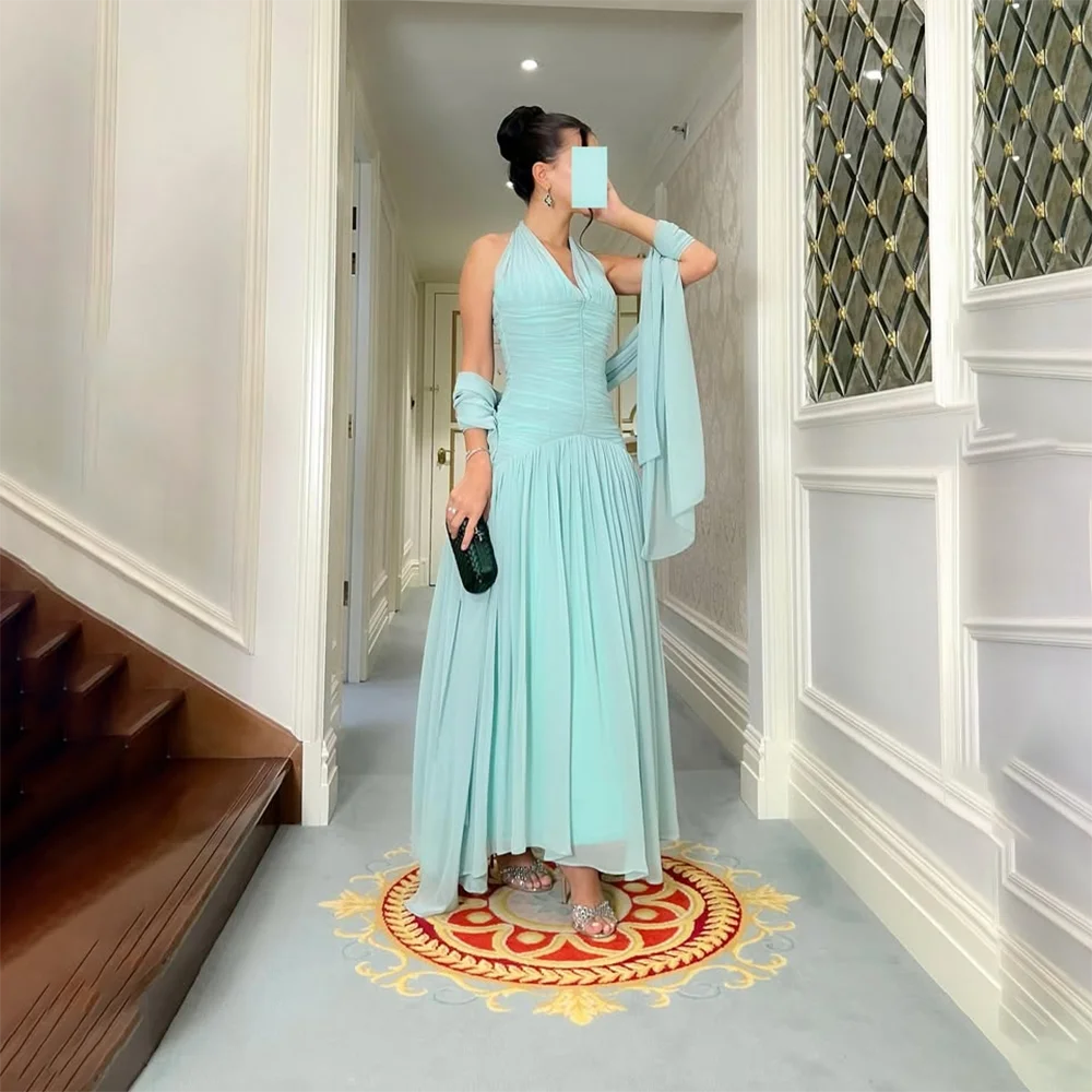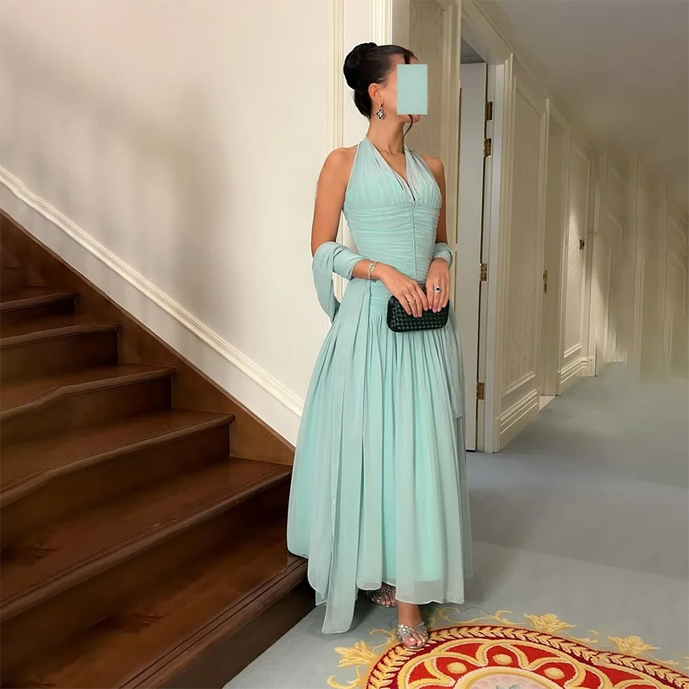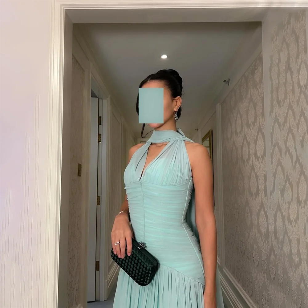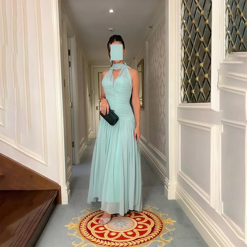 Elegant Evening Dresses for Women 2025 V-Neck Sleeveless Evening Gowns Long Pleated A Line Saudi Arabian Formal Gown Customized