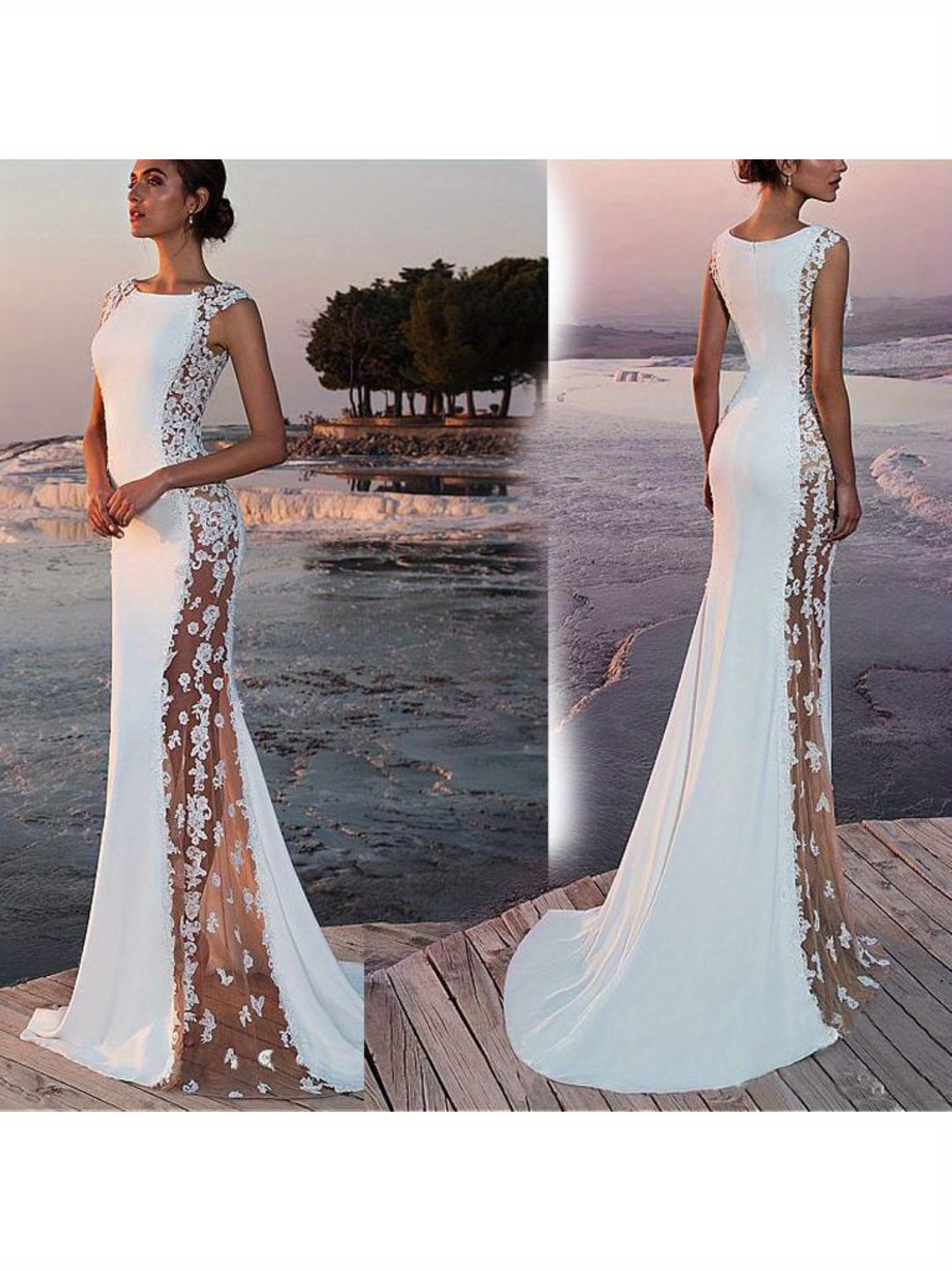 Elegant Women'S Evening Lace Splicing Hollow Extra Long Dresses Sleeveless Waisted Hip Trailing Wedding Evening Dating Vacation Essential Out Fantastic Women'S Dresses