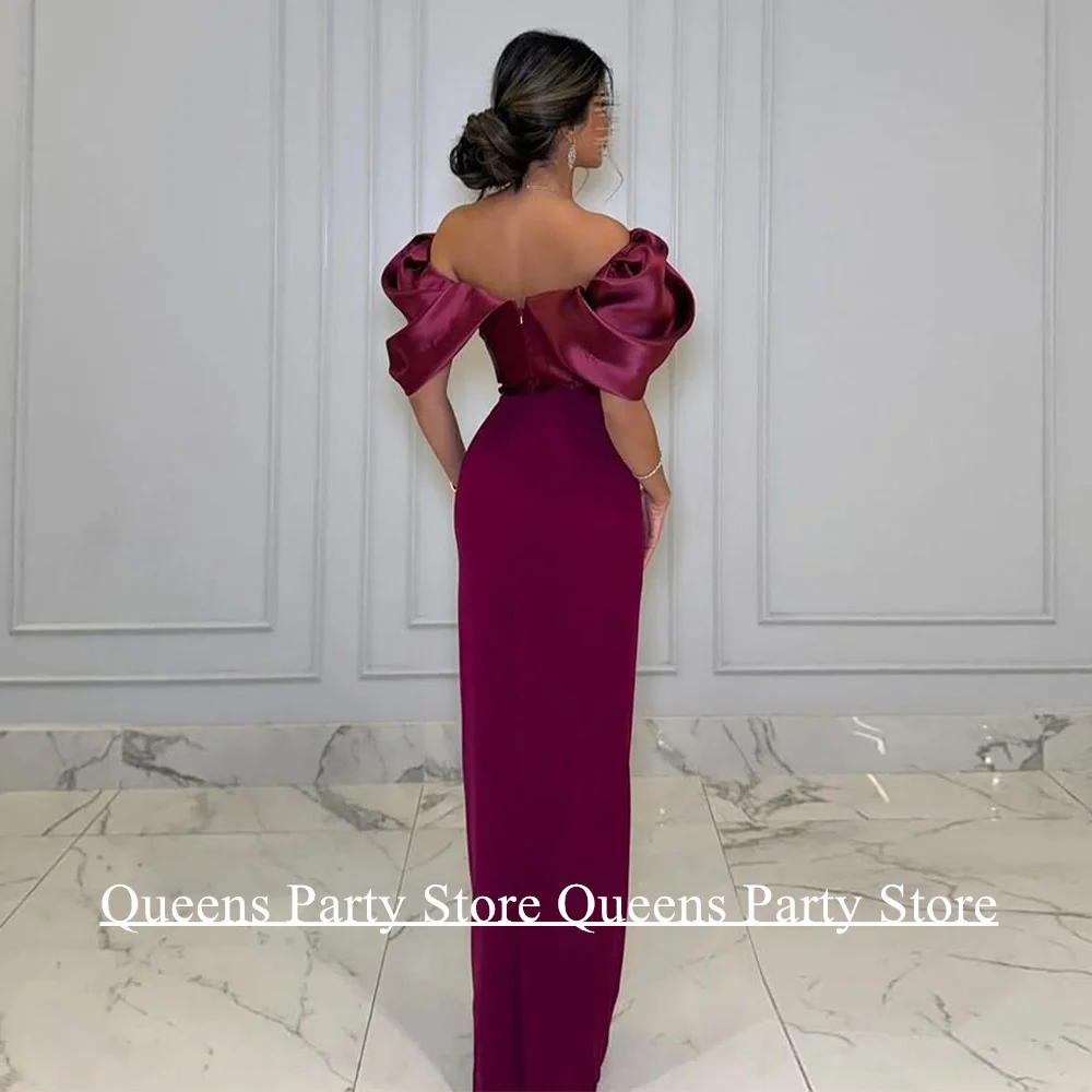Simple Arabic Evening Dress فساتين سهرة Customized Off Shoulder Pleat Straight Formal Occasion Dresses Back Slit Party Gown