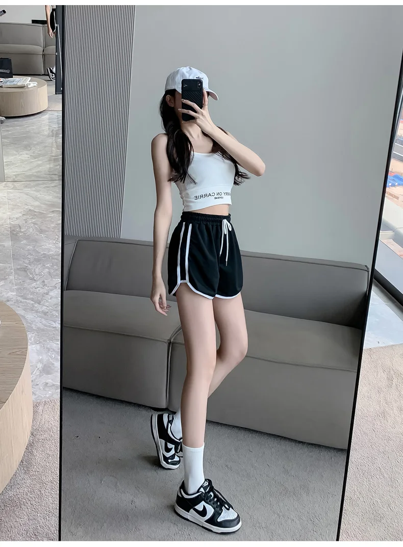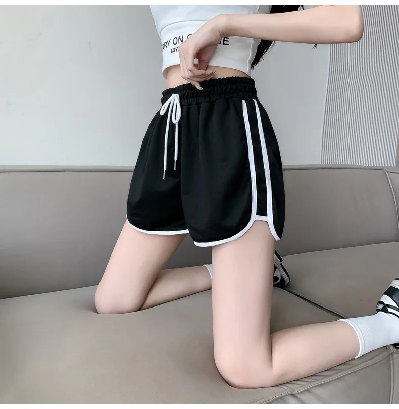 Sports Shorts Women's Summer Thin Outer Wear Three-Quarter Pants White Edge Drawstring High Waist Loose Slimming Wide Leg Casual Pants