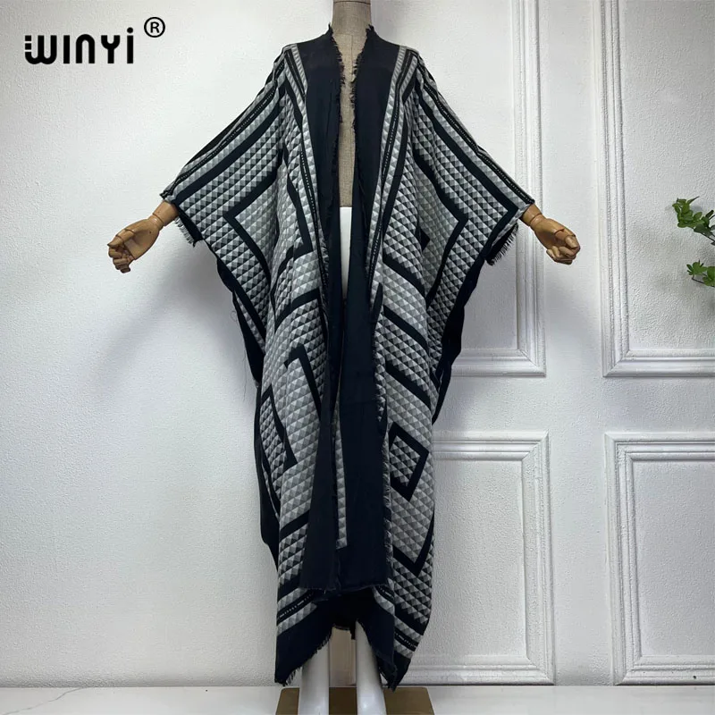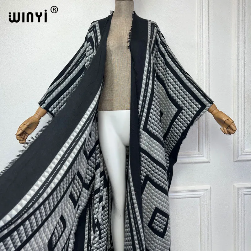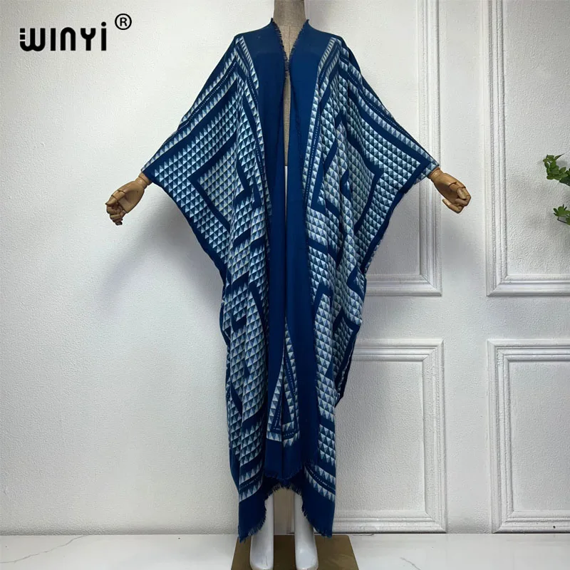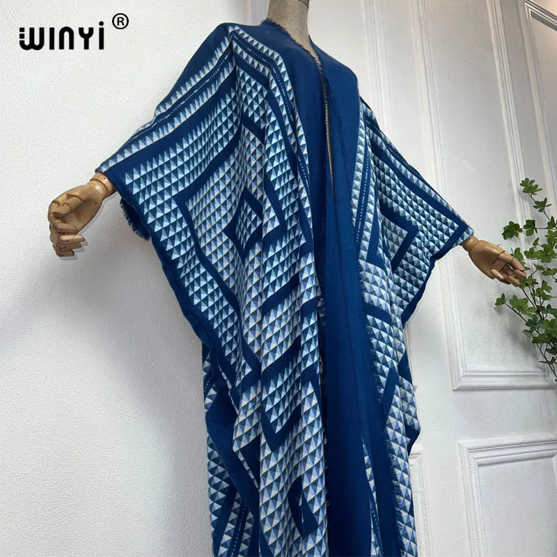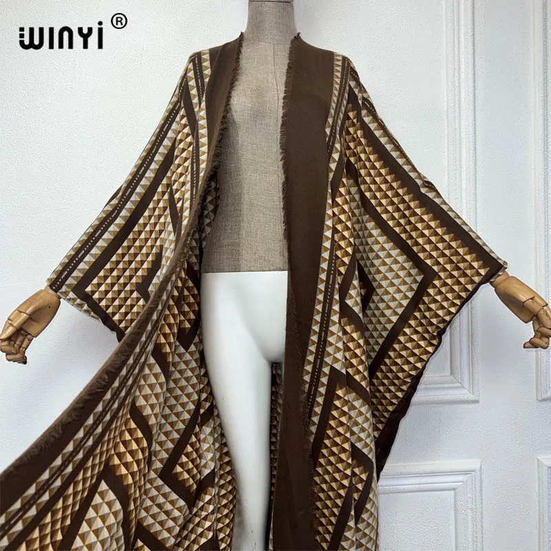 WINYI new winter clothes for women Geometric print Africa Luxury Long Fur Loose dress Thick Warm long down coat winter abaya