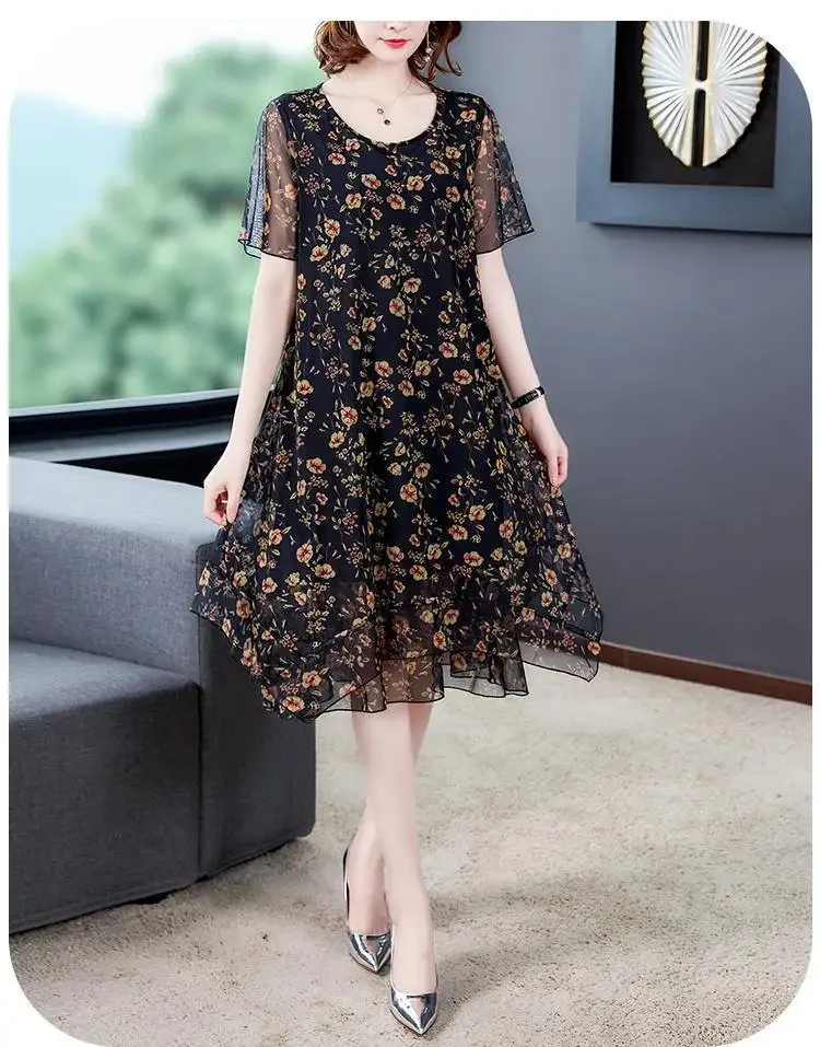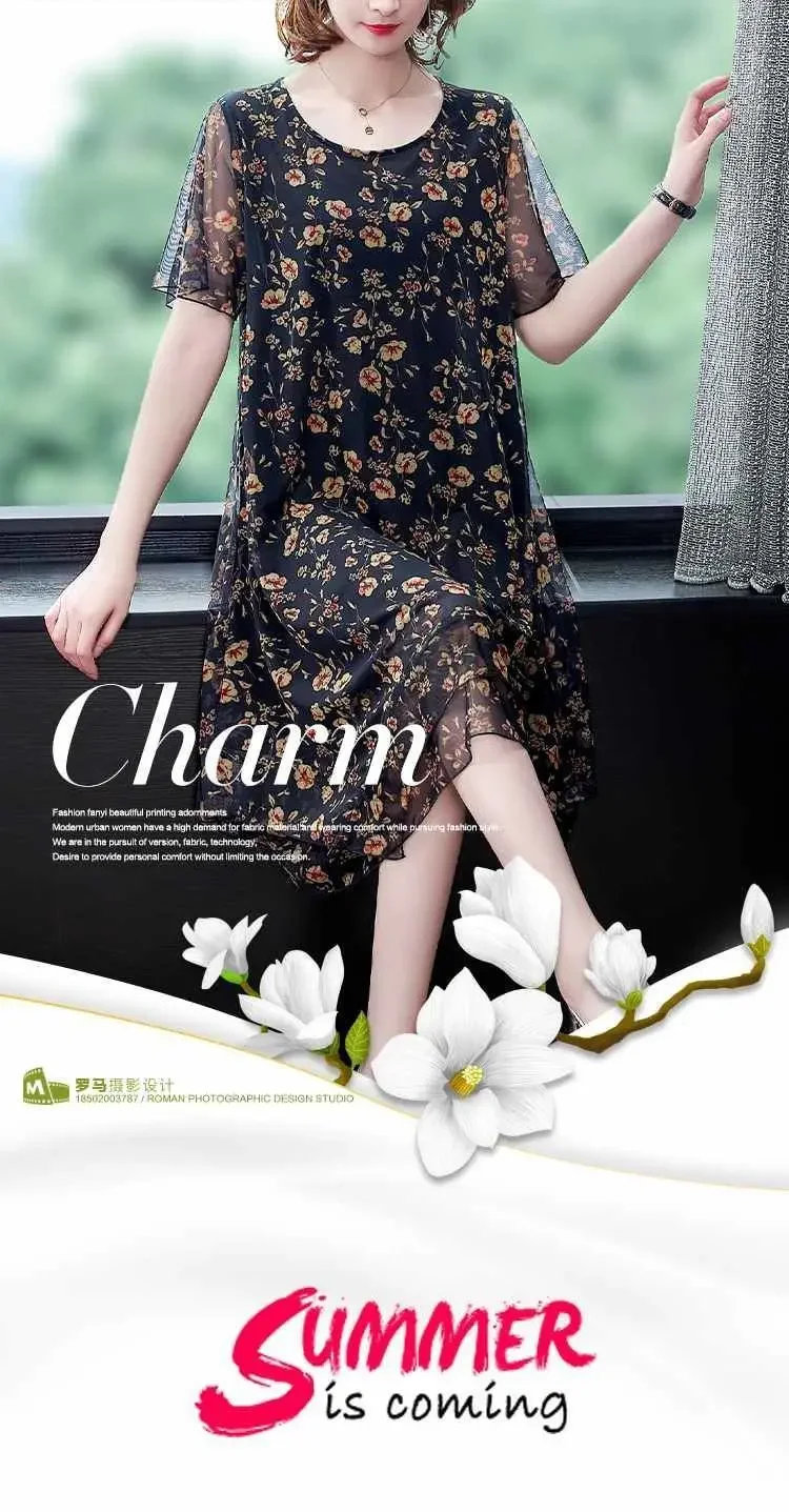 Woman Dress Summer Women's New Loose Floral Gauzy Chiffon Dress Summer Dress Vestido De Mujer