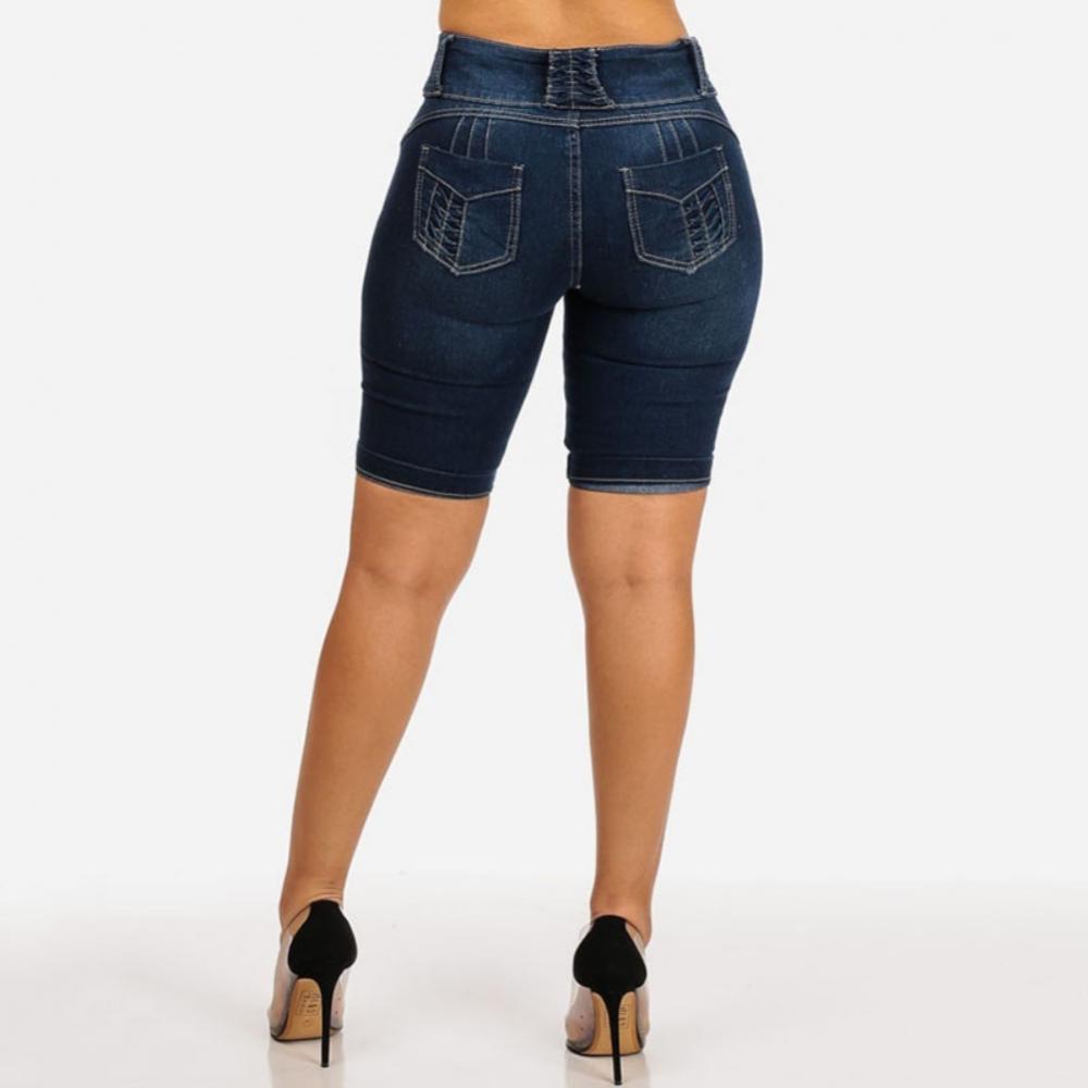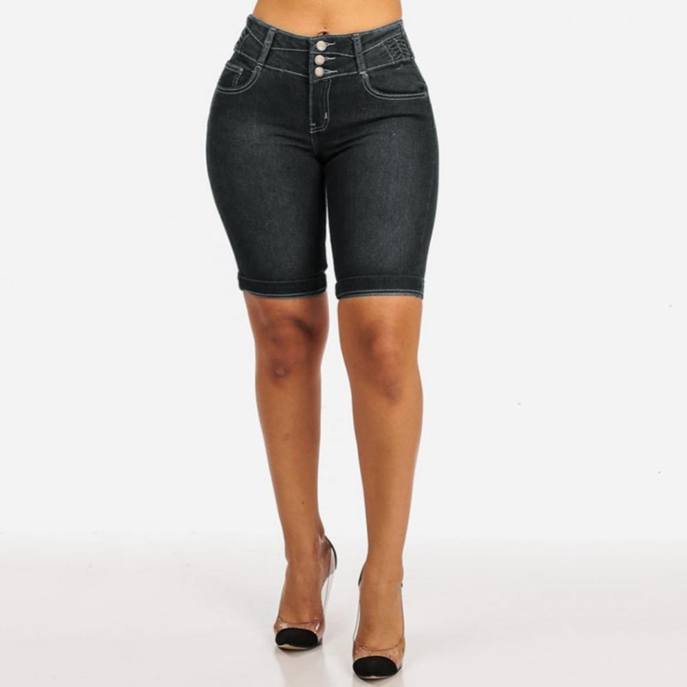 Women Denim Shorts Summer Fashion Casual High Waist Solid Color Skinny Slim-Fit Shorts Jeans