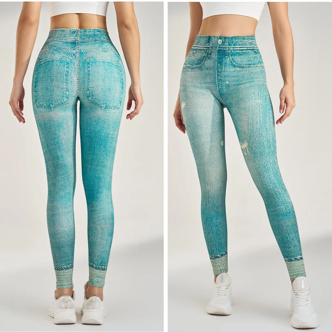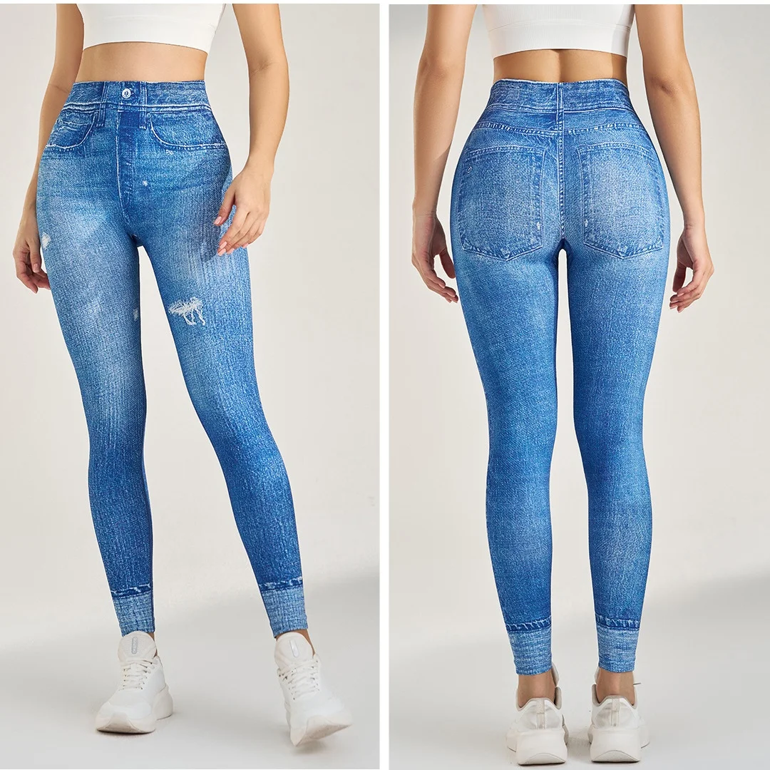 Women's High Stretch Imitation Jeans High-Waist Leggings Leisure Slim Pants Fashion Comfort Yoga Pants Pencil Pants