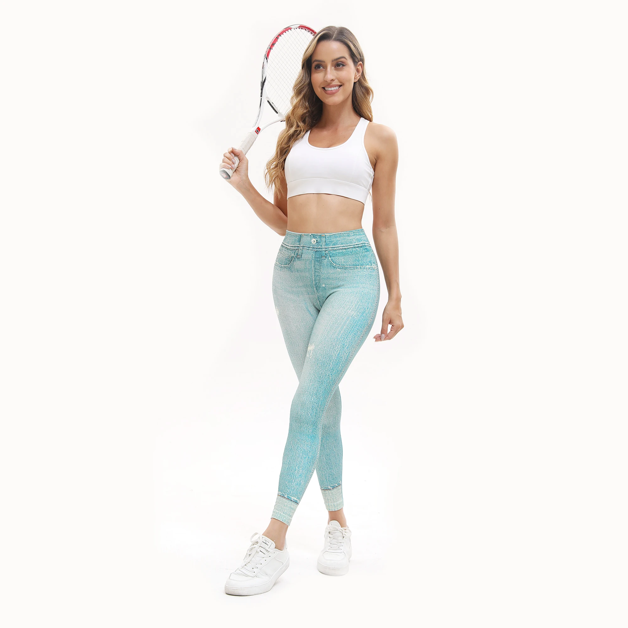 Women‘s High Stretch Imitation Jeans High-Waist Leggings Leisure Slim Pants Fashion Comfort Yoga Pants Pencil Pants
