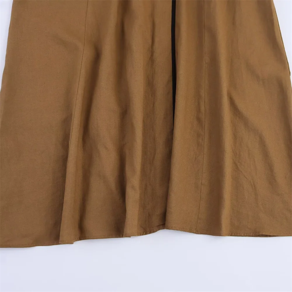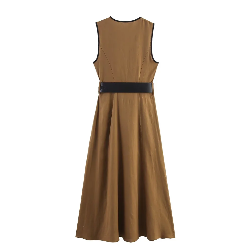 Women's Dress 2025 New Fashion Autumn Winter Linen Belt Midi Dresses for Women Casual Chic Ladies Clothes