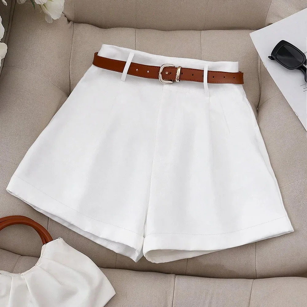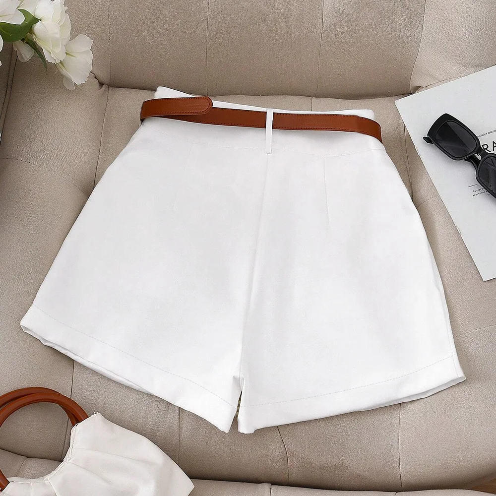 Women's High-Waisted Pleated Shorts Fall/Winter Casual Office Outfit, Elegant Chic Wide-Leg Tailored Shorts