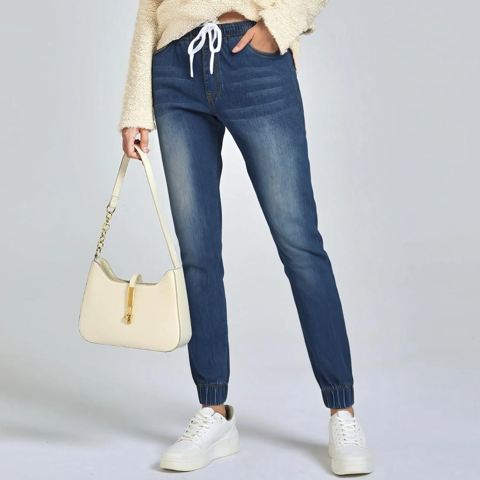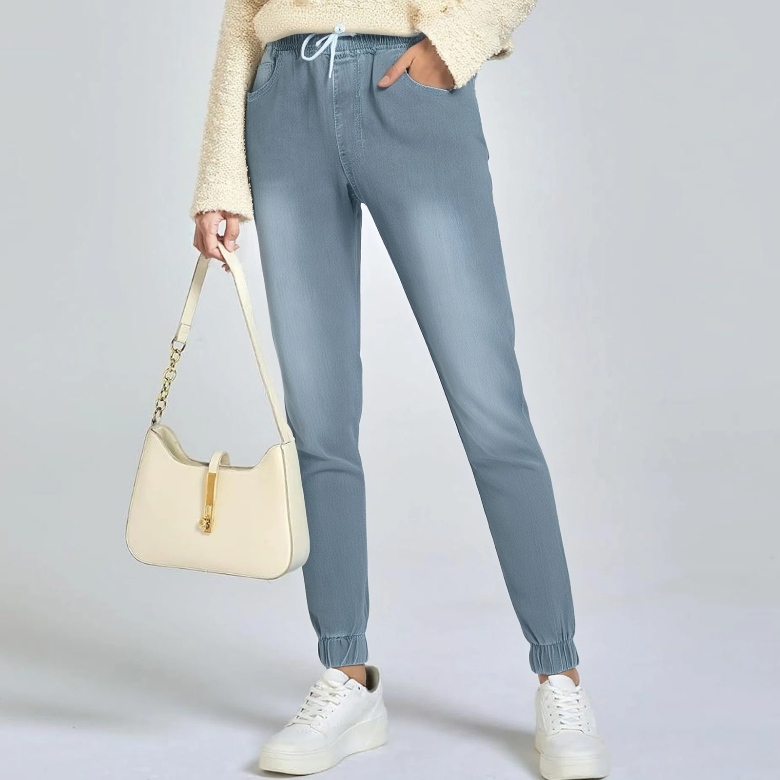 Women'S Jeans Light Blue Drawstring Jeans Women'S Casual Pants Daily Commuting Loose Harem Jeans Casual Street All-Match