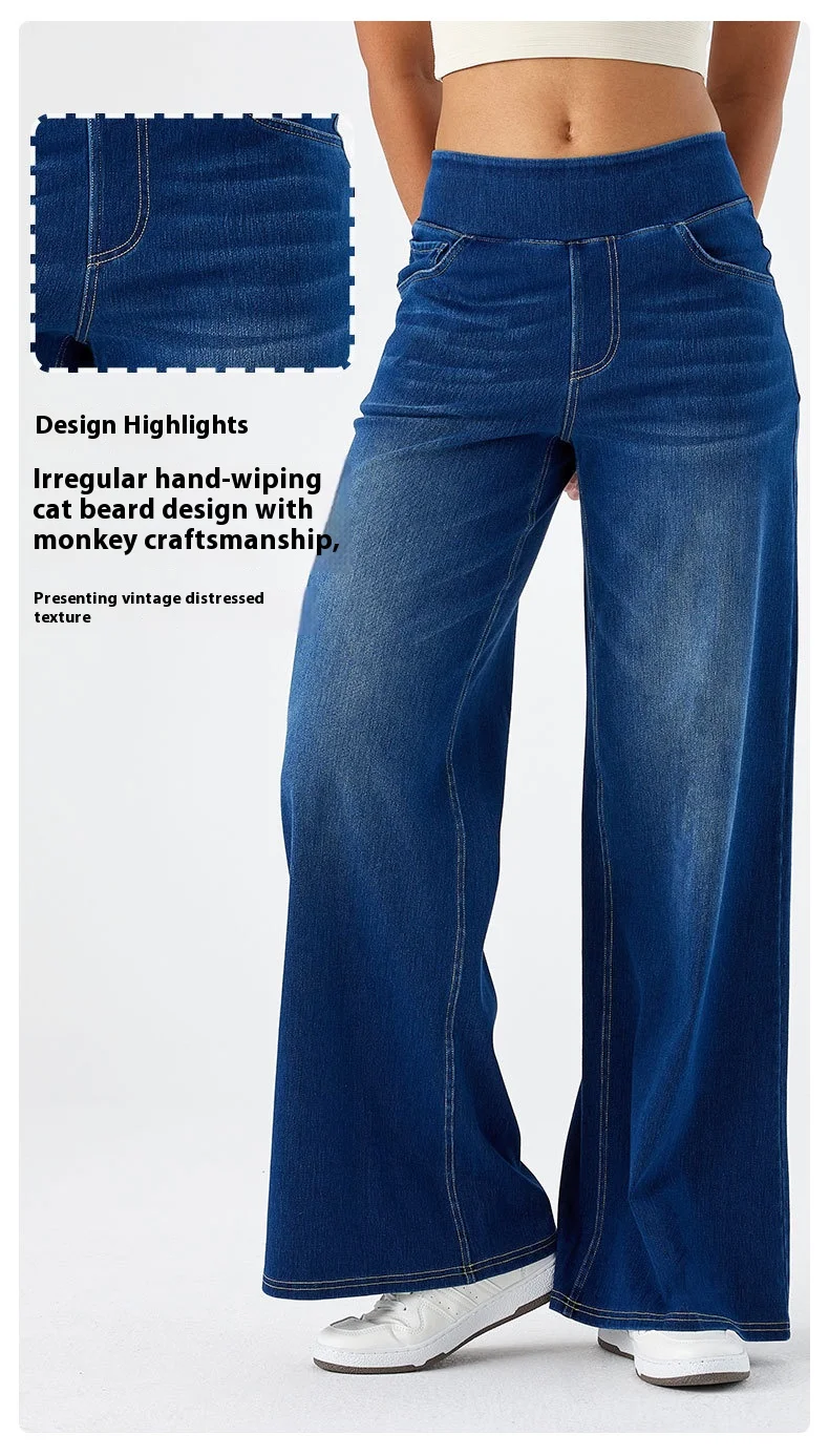 name: Women's jeans,Denim trousers,Occidental style,Straight-leg jeans,High waist,Slim,Thin,New,liberally,Simple,Comfortable,Loose,Large size,Casual wear,Casual jeans,Fashion,Age Reduction,Wide-leg jeans,Wide-leg pants