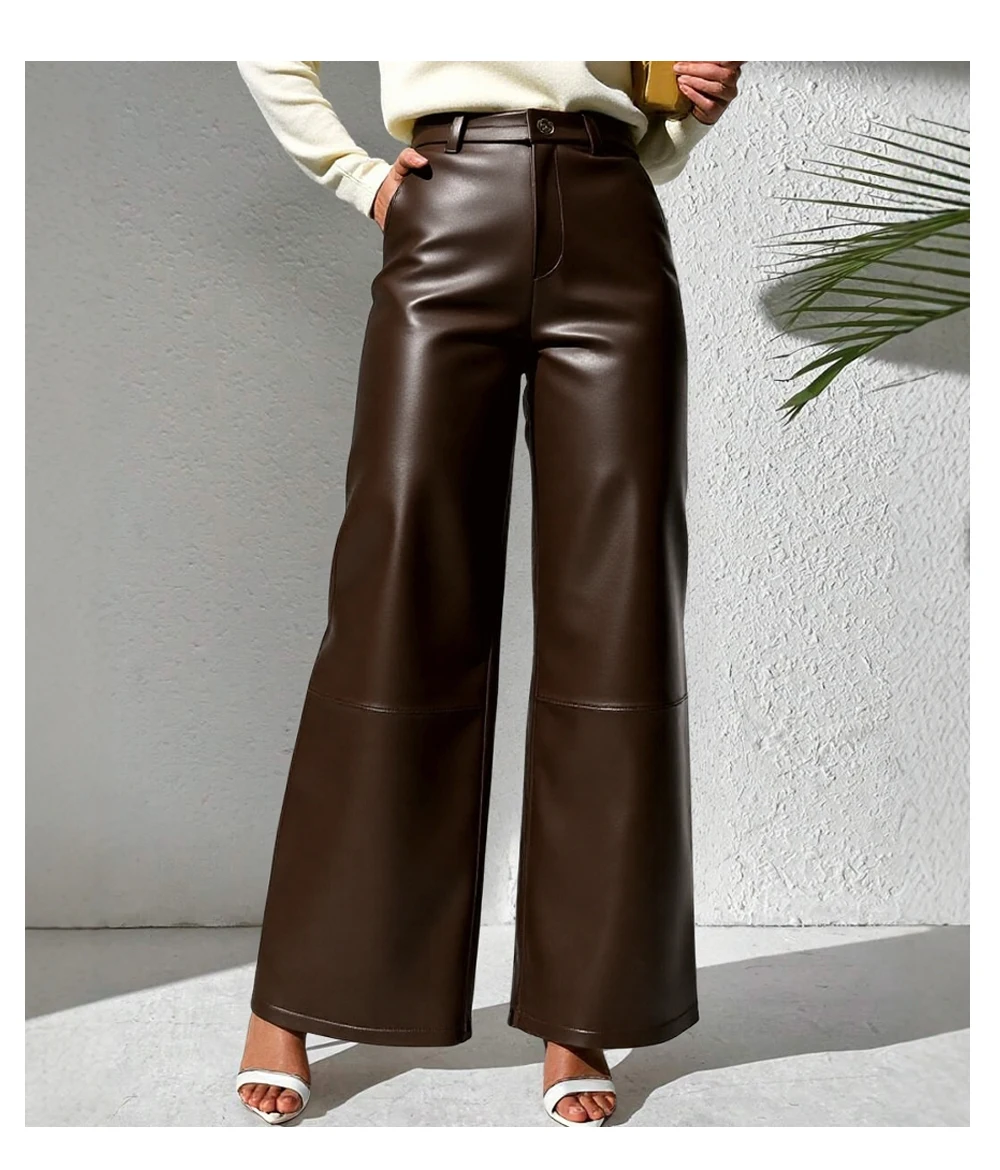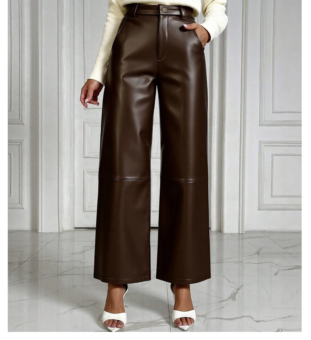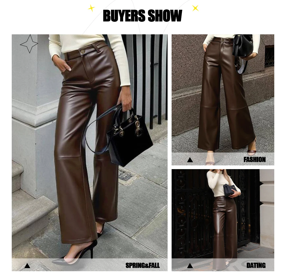Women's Pants 2025 Winter Essential Glossy Wide Leg Design High Waist Plain Full Length Fluid Silhouette Office Pants
