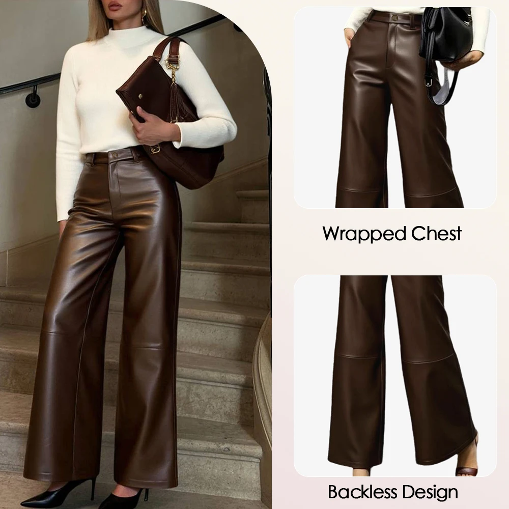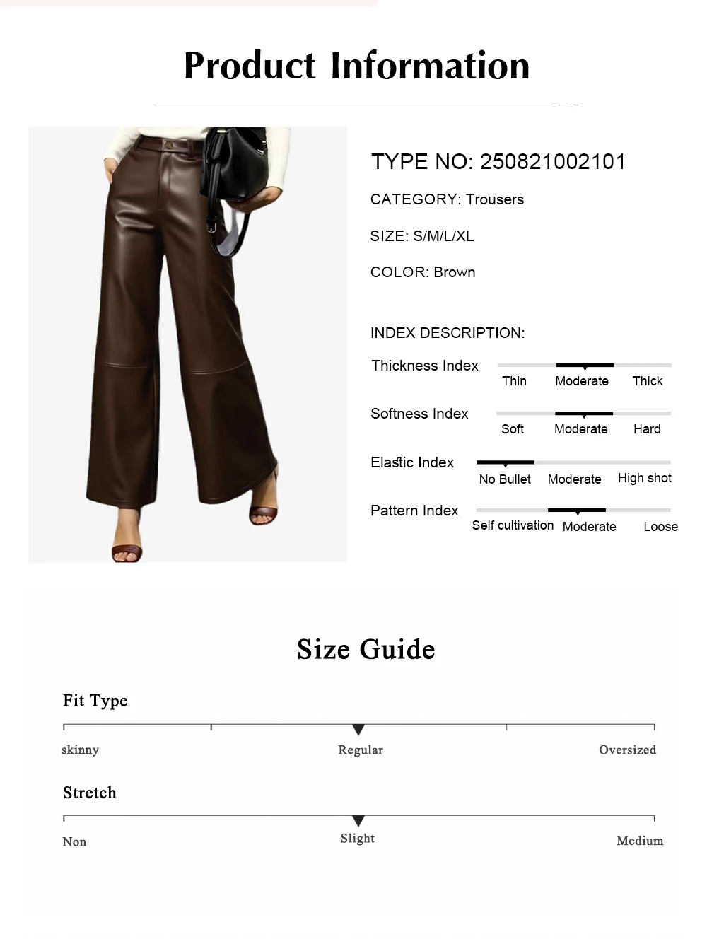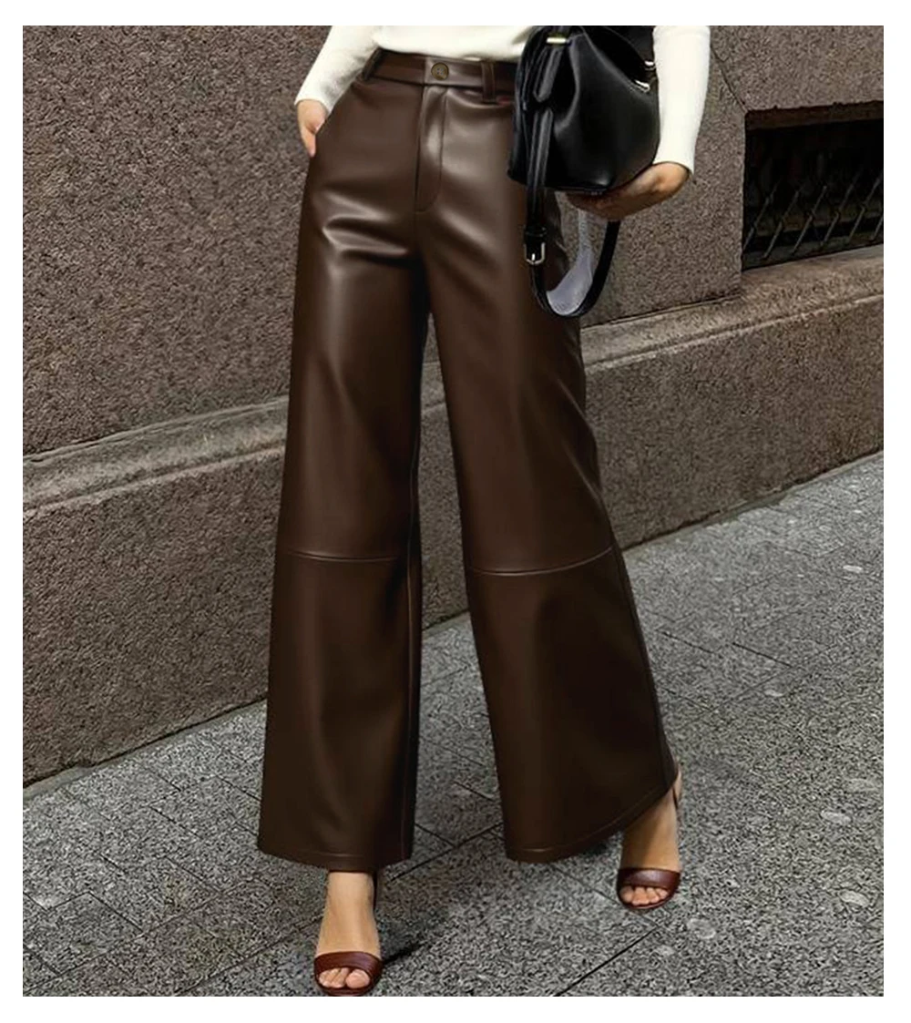 Women's Pants 2025 Winter Essential Glossy Wide Leg Design High Waist Plain Full Length Fluid Silhouette Office Pants