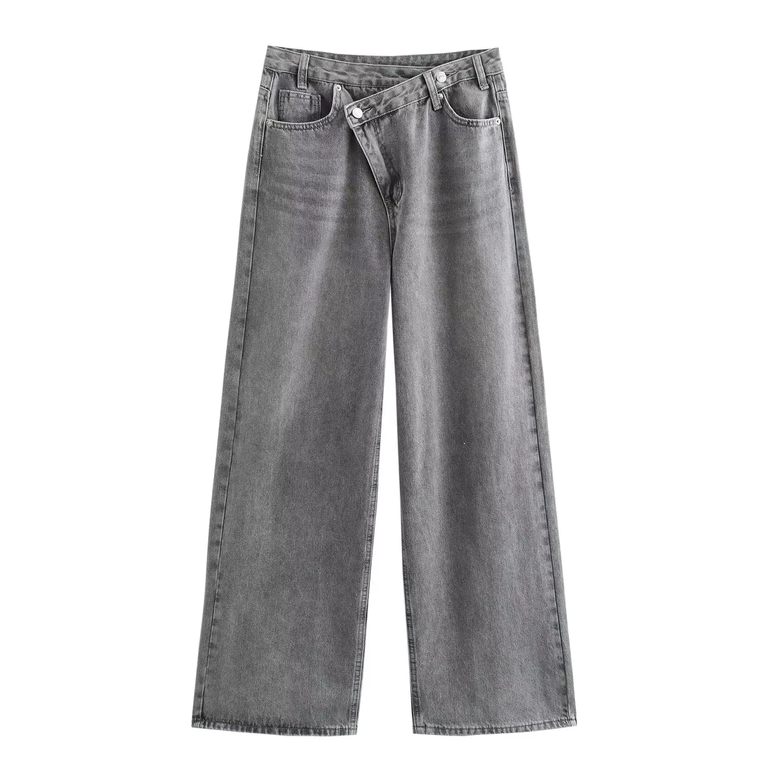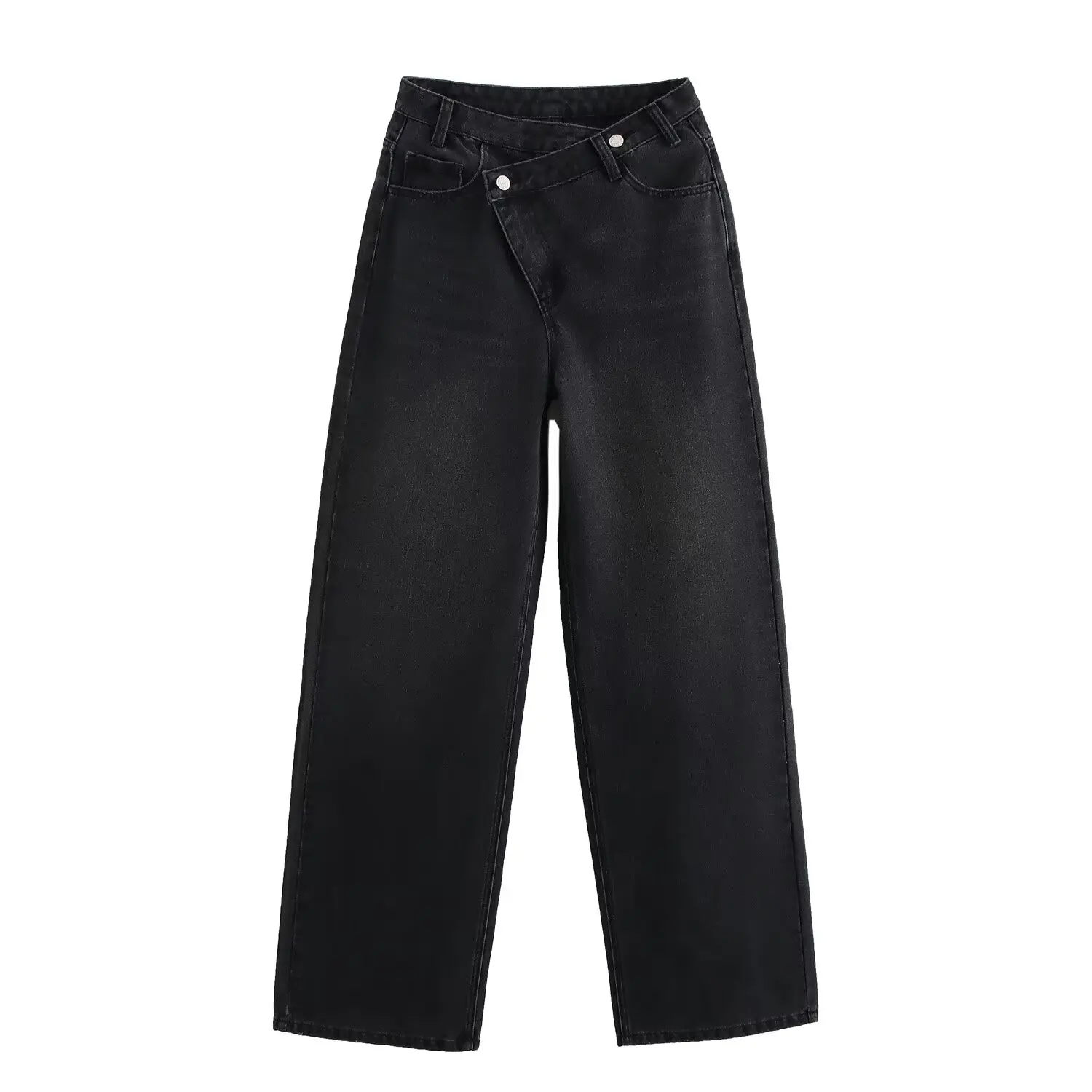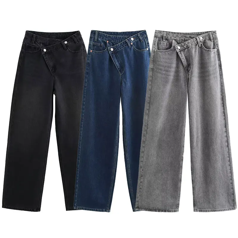 Women's Trousers Denim Solid Asymmetric High Waist Straight Long Pants Lady Versatile Basic 2025 New Woman Wide Leg Jeans