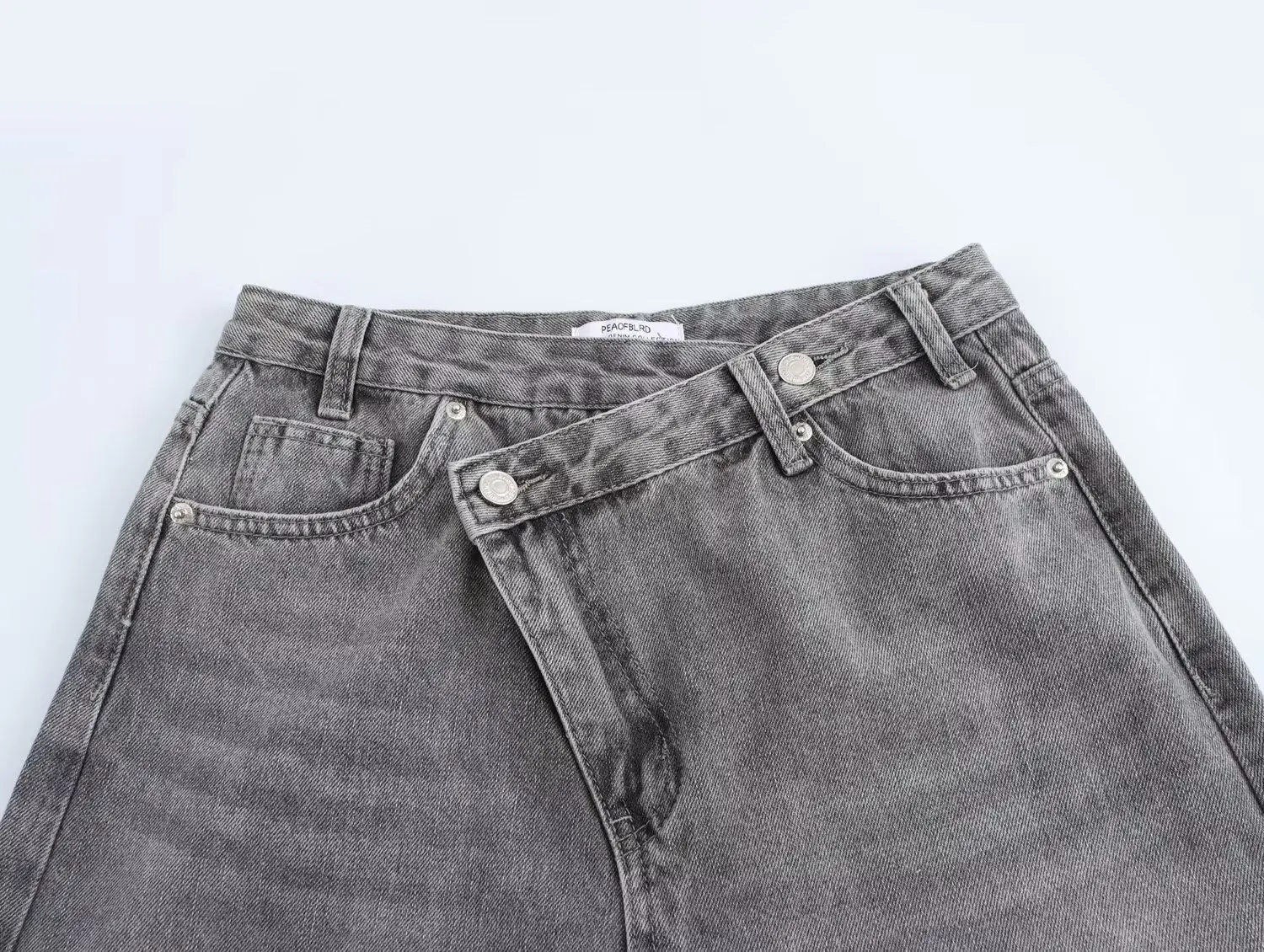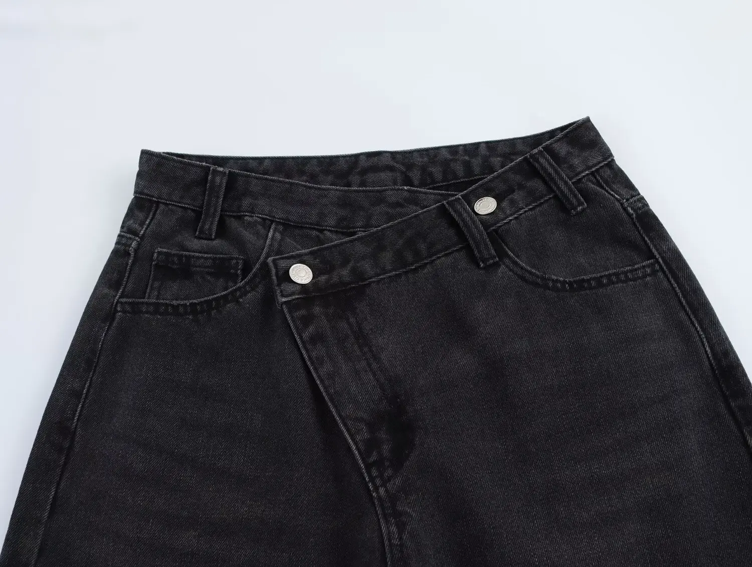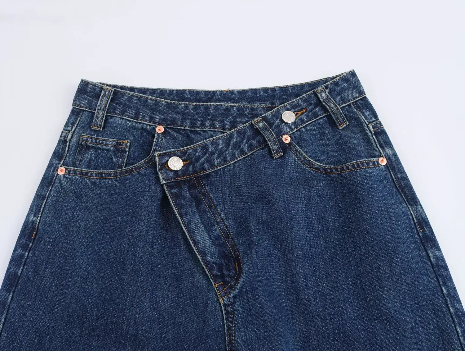 Women's Trousers Denim Solid Asymmetric High Waist Straight Long Pants Lady Versatile Basic 2025 New Woman Wide Leg Jeans