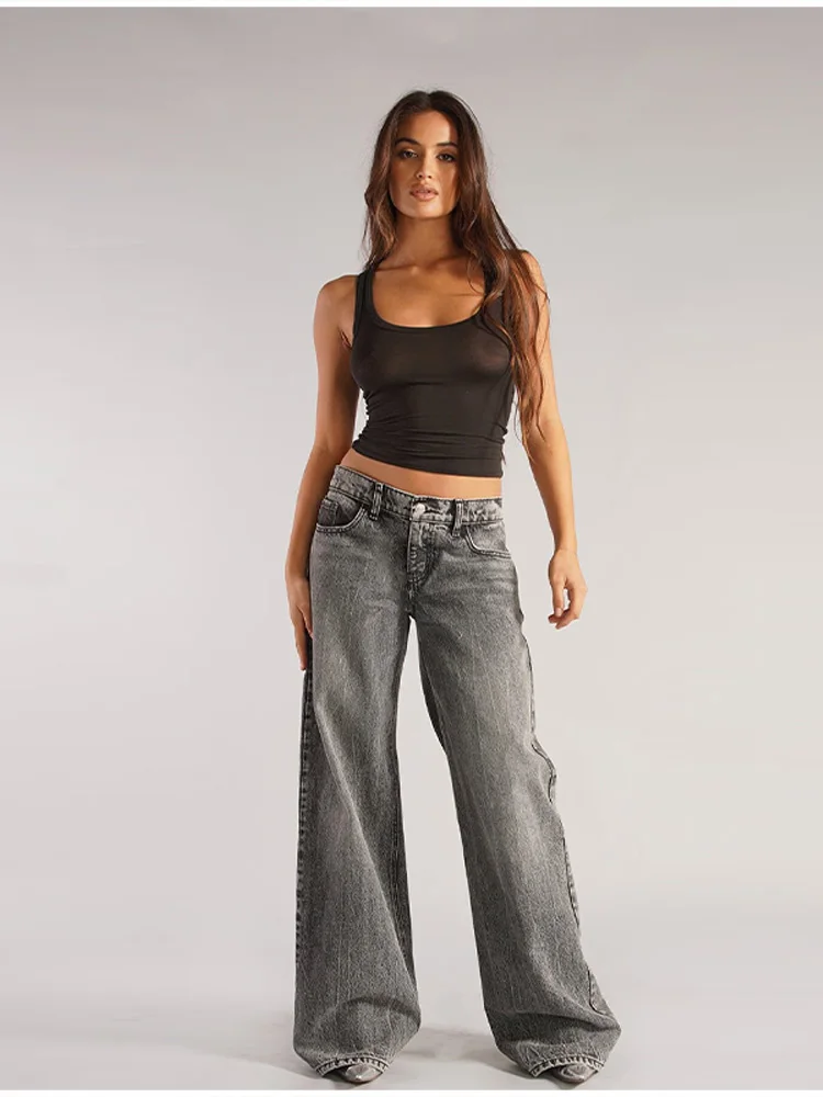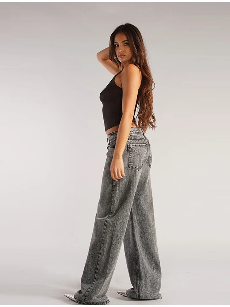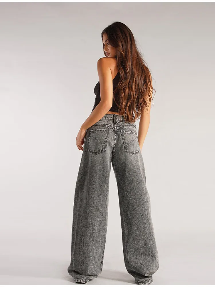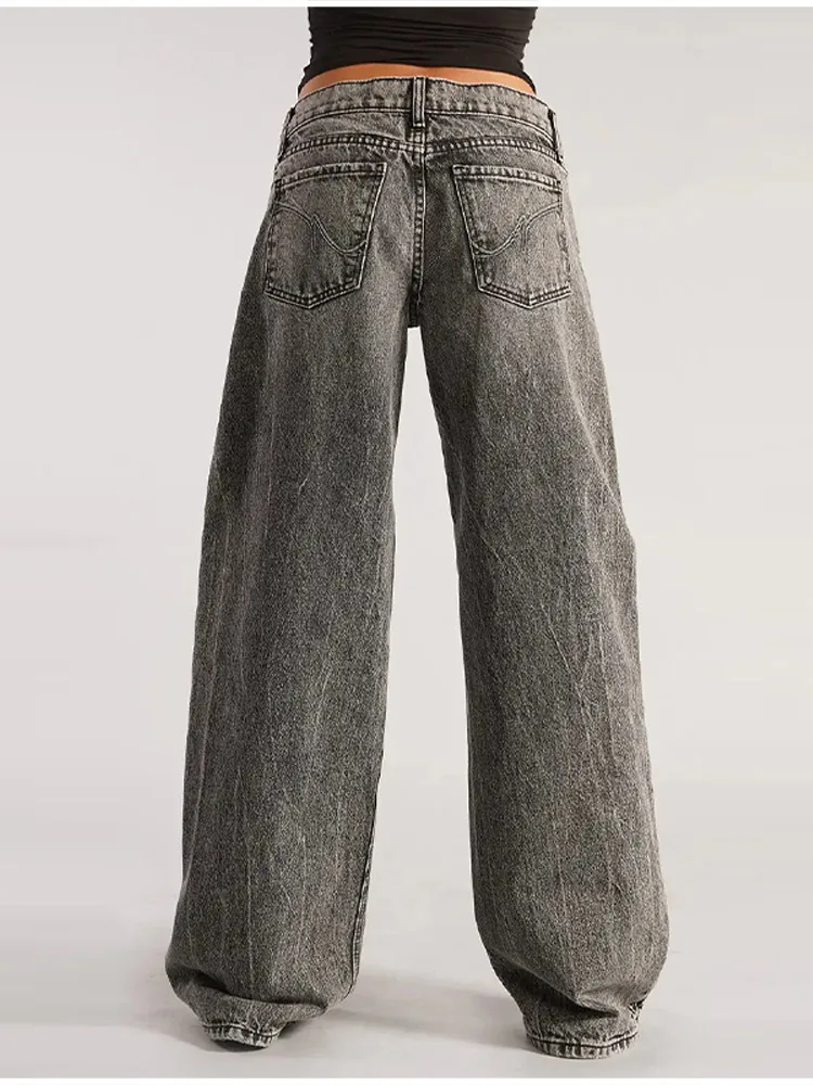 Women's Wide Leg Floor Length Pants Jeans Versatile Vintage Low-rise Jeans Female Clothing 2025 Women's New Fashiona Jeans